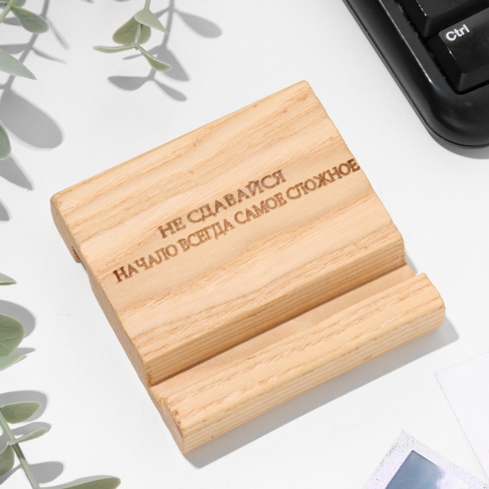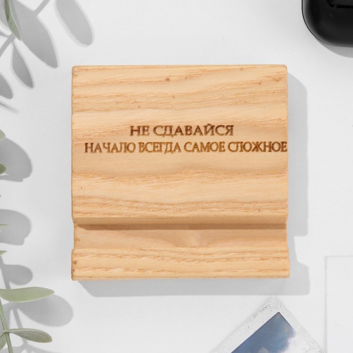 Подставка под телефон, планшет "Не сдавайся. Начало всегла самое сложное", 8*8*1,6 см, бук