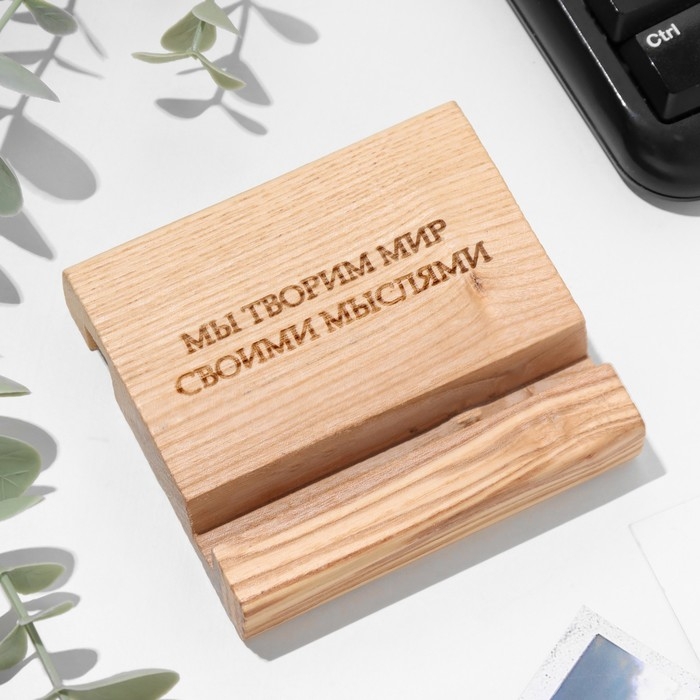 Подставка под телефон, планшет "Мы творим мир своими мыслями", 8*8*1,6 см, бук