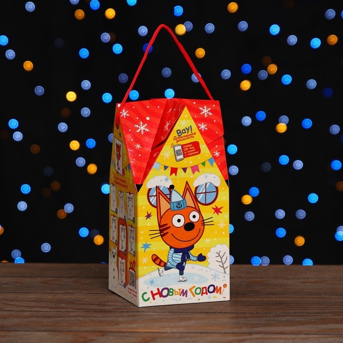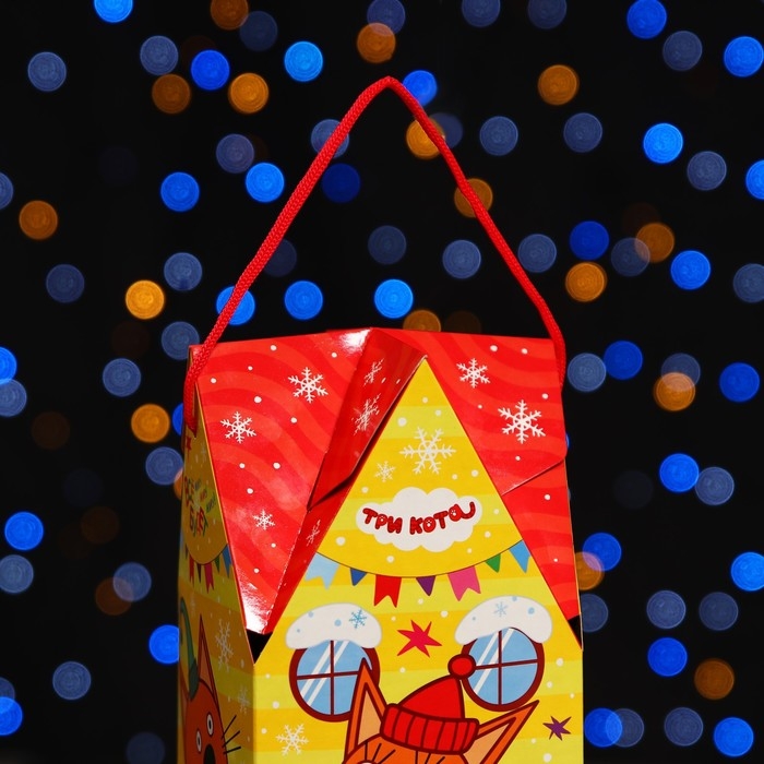 Новый год. Коробка подарочная складная "Три кота" 10,5 х 10,5 х 21,5 см.