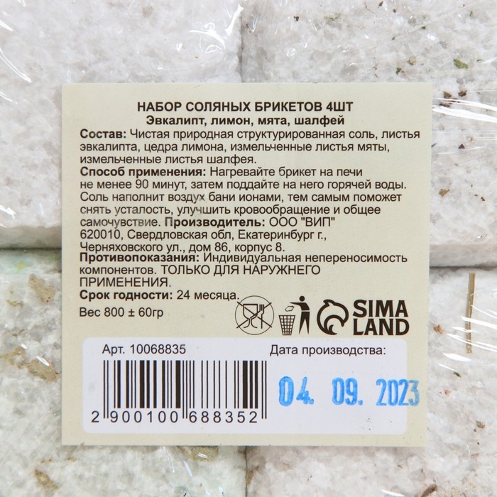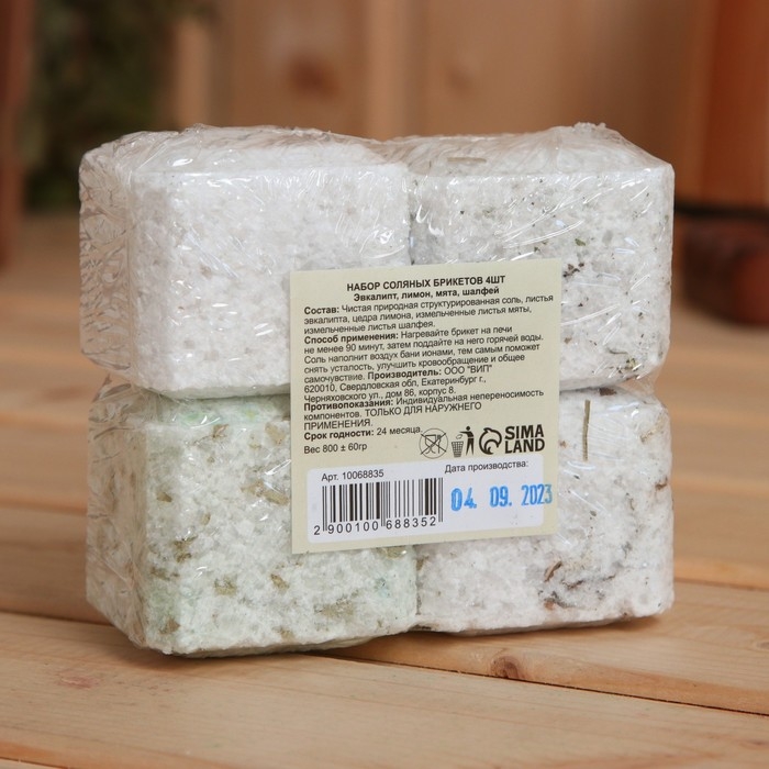 Соляной брикет набор 4 шт "Эвкалипт, Лимон, Мята, Шалфей"