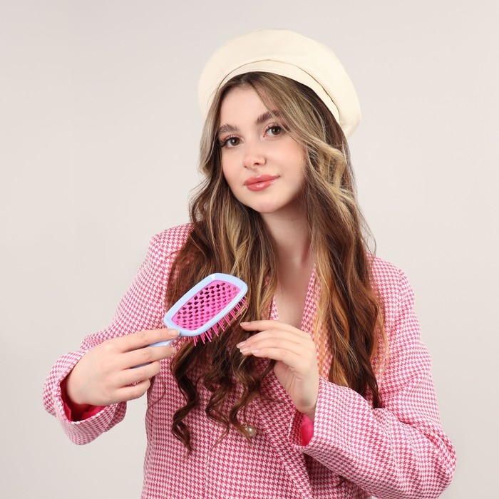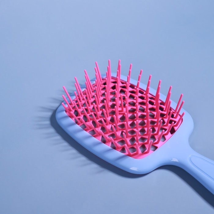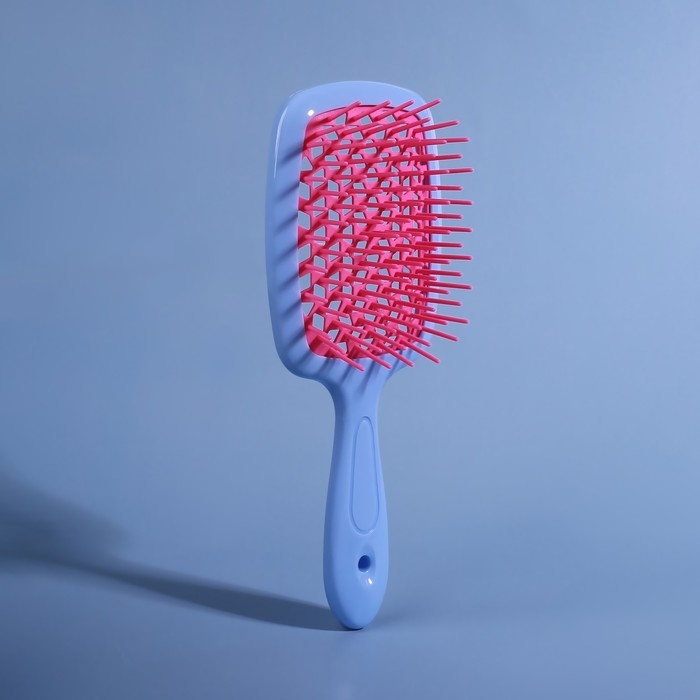Расчёска массажная, широкая, вентилируемая, 8,5 × 20,5 см, PVC коробка, цвет голубой/розовый