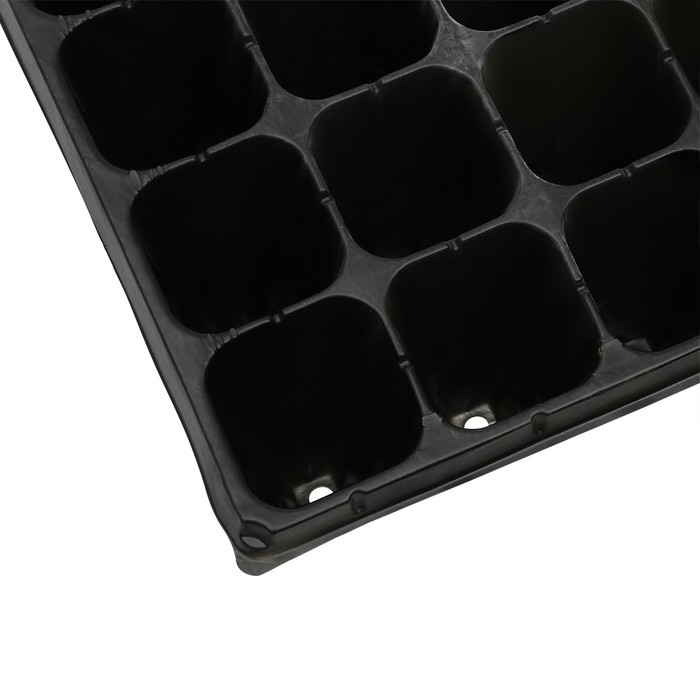 В каждой ячейке корневая система развивается свободно. Поддон регулирует увлажнённость почвы. При недостатке полива добавьте в него воду для впитывания. При избыточном орошении сливайте жидкость из поддона. Пластиковая кассета легко моется, сохраняет форму на солнце, не гниёт.