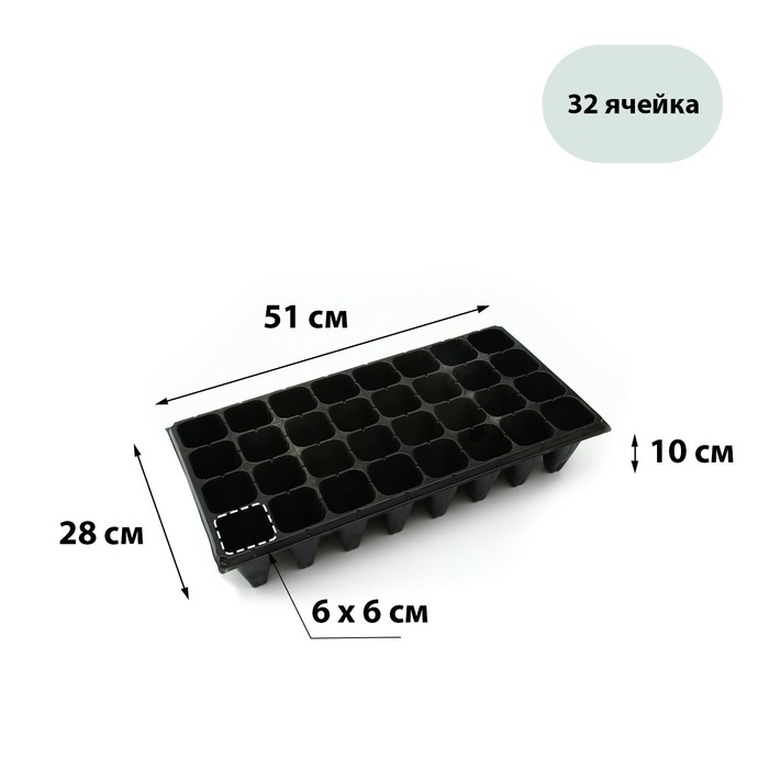 Кассета для выращивания рассады, на 32 ячейки, по 180 мл, из пластика, чёрная, 51 × 28 × 10 см, Greengo