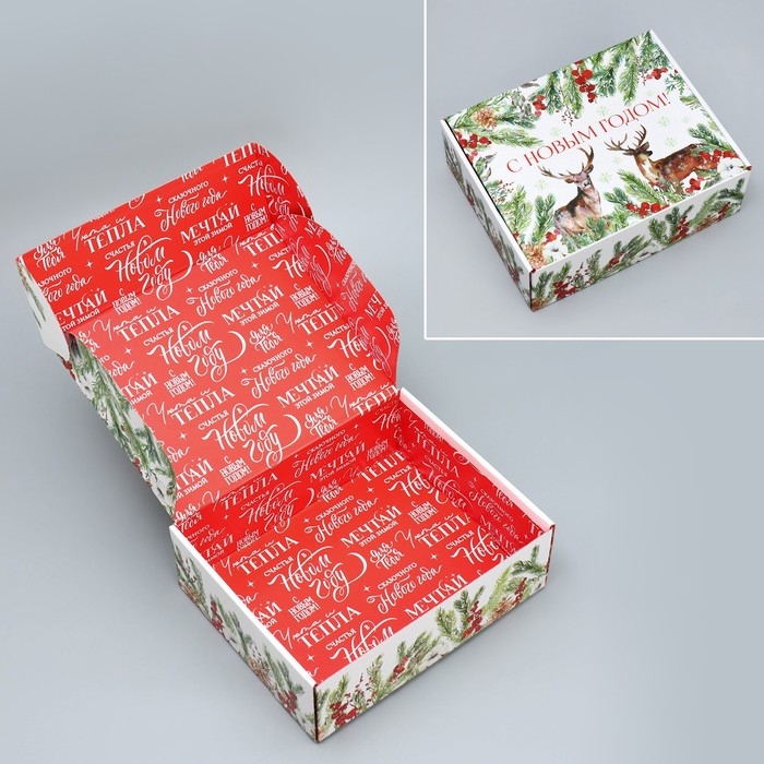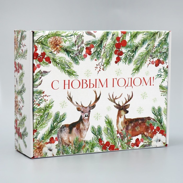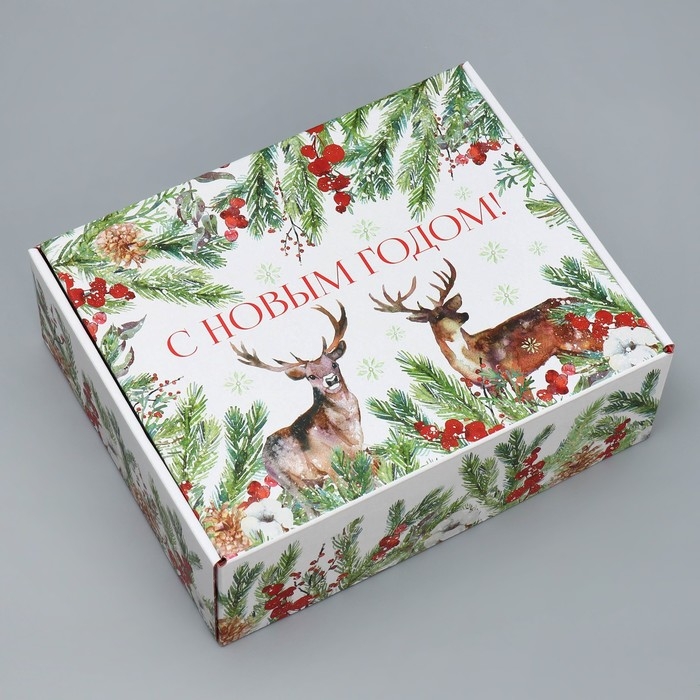 Коробка подарочная новогодняя складная «Новогодняя акварель», 27 х 21 х 9 см, Новый год