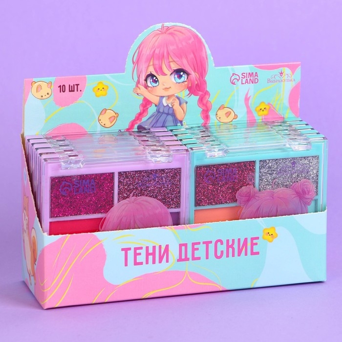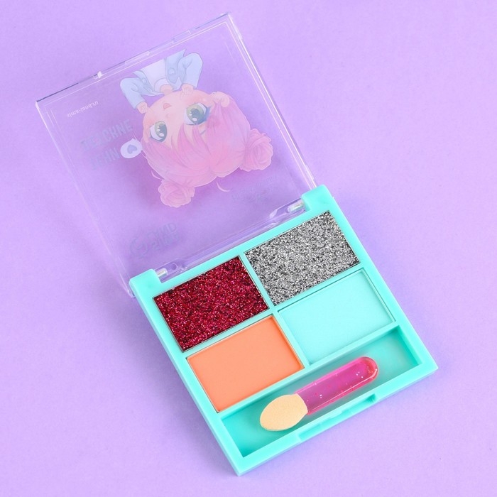 Набор теней детских для век 12 цв, 4 с блёстками, 8 матовые + аппликатор