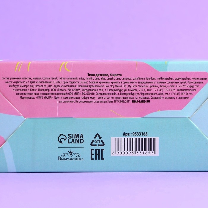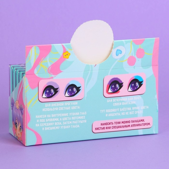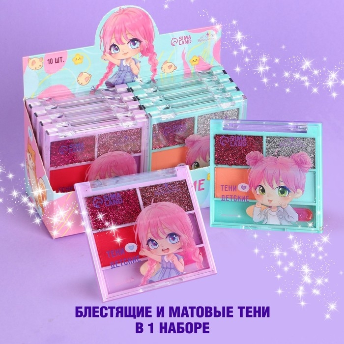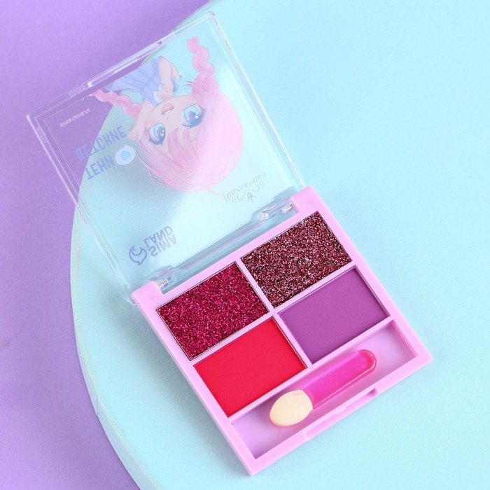 В детскую палетку «Милота» входят тени 4 оттенков. Яркие матовые и блестящие тени для век очень понравятся девочкам.