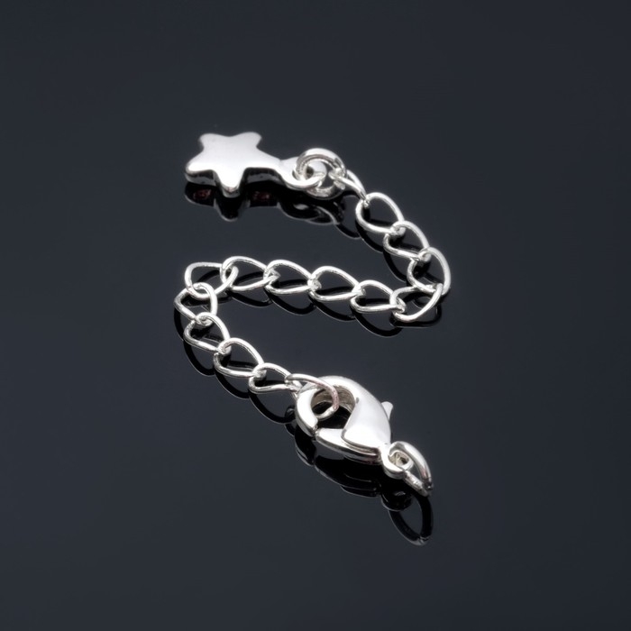 Замок-карабин родированный 1,5×0,5см «Звезда» с удлинителем 6см, серебро