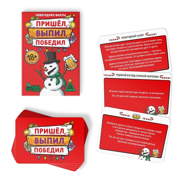 Новогодние фанты «Новый год: Пришёл, выпил, победил!», 20 карт, 18+
