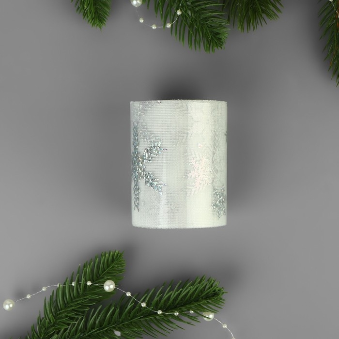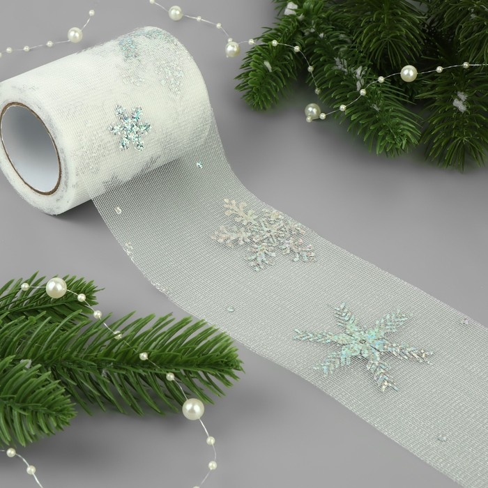 Новый год! Фатин со снежинками, с голографией, 7,5 см, 11 ± 1 г/кв.м, 9,1 ± 0,5 м, цвет белый №33