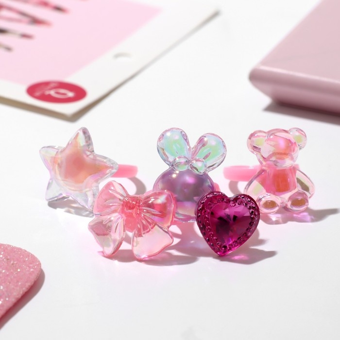 Набор детских колец «Выбражулька» красота, форма МИКС, цвет розовый