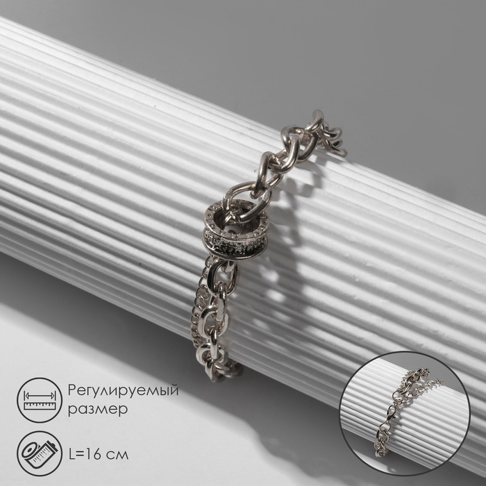 Браслет металл «Колесо» цепь, цвет чернёное серебро, L=16 см