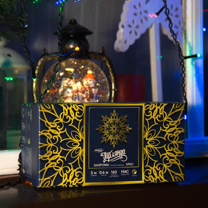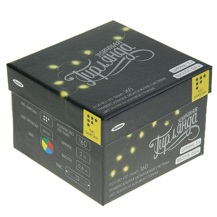 Гирлянда «Бахрома» 3 × 0.6 м, IP44, УМС, тёмная нить, 160 LED, свечение мульти, 220 В