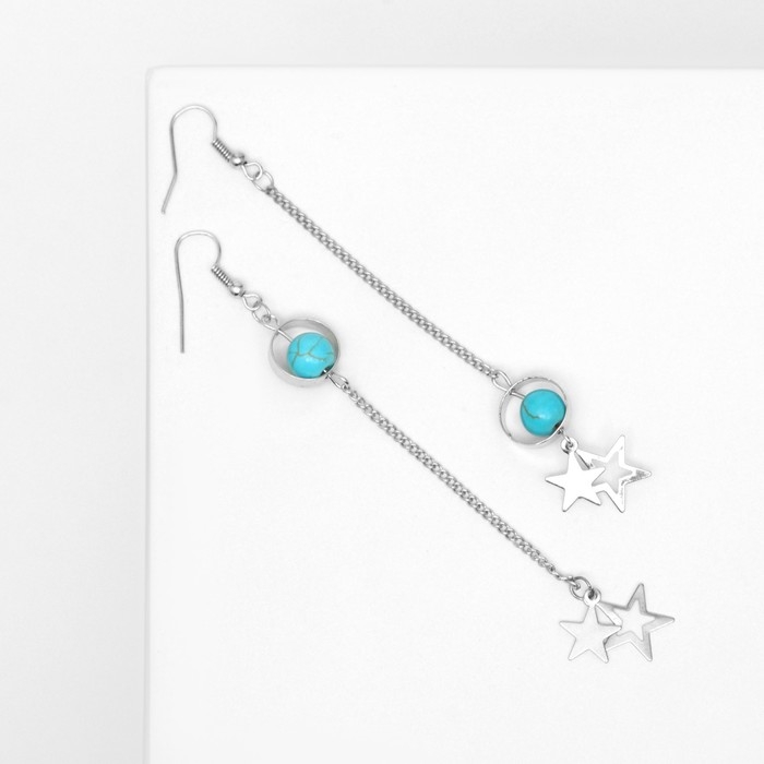 Серьги «Звёзды» бирюза, цвет голубой в серебре