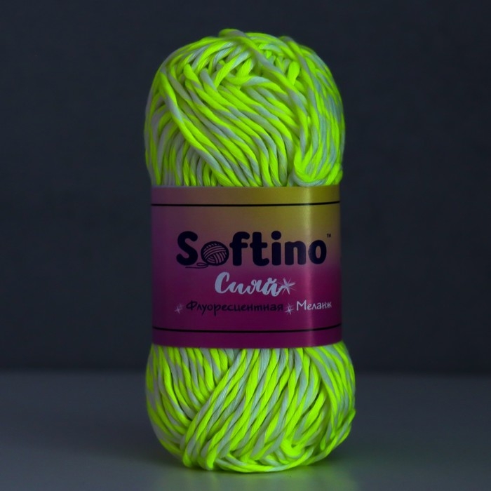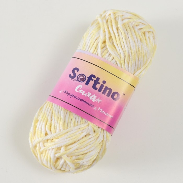 Пряжа светящаяся 100% лавсан "Сияй" меланж 50 гр 50 м бело-светло-желтая