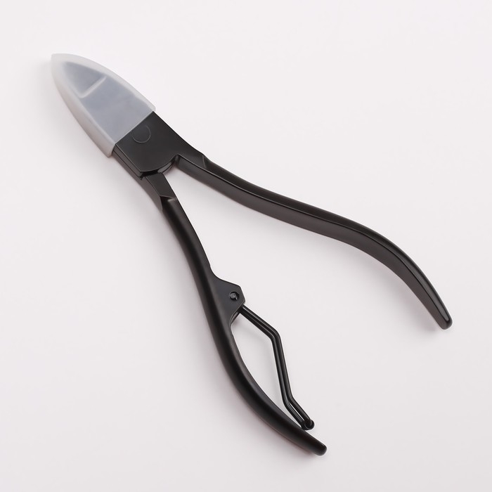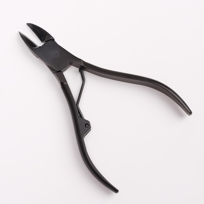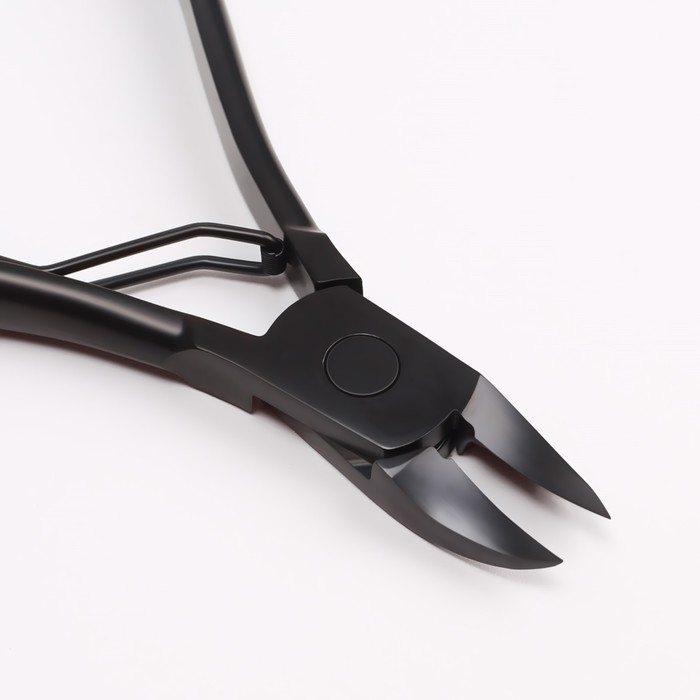 Кусачки педикюрные, с колпачком, изогнутое лезвие, 10,5 см, длина лезвия - 15 мм, цвет чёрный