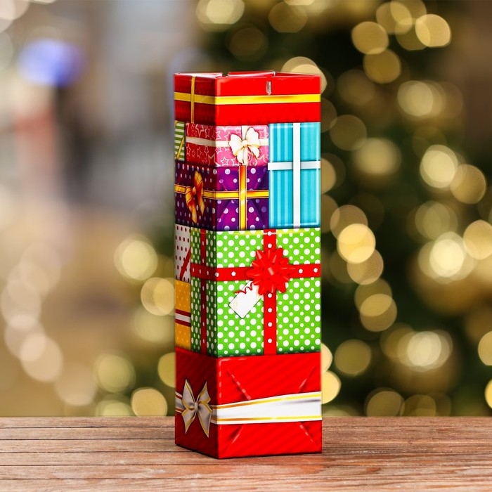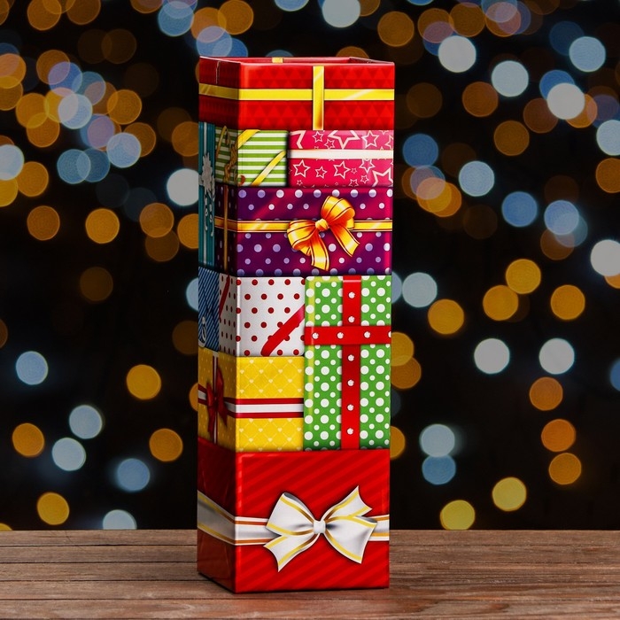 Новый год. Подарочная коробка "Подарки" , Башня 12 х 12 х 40см.