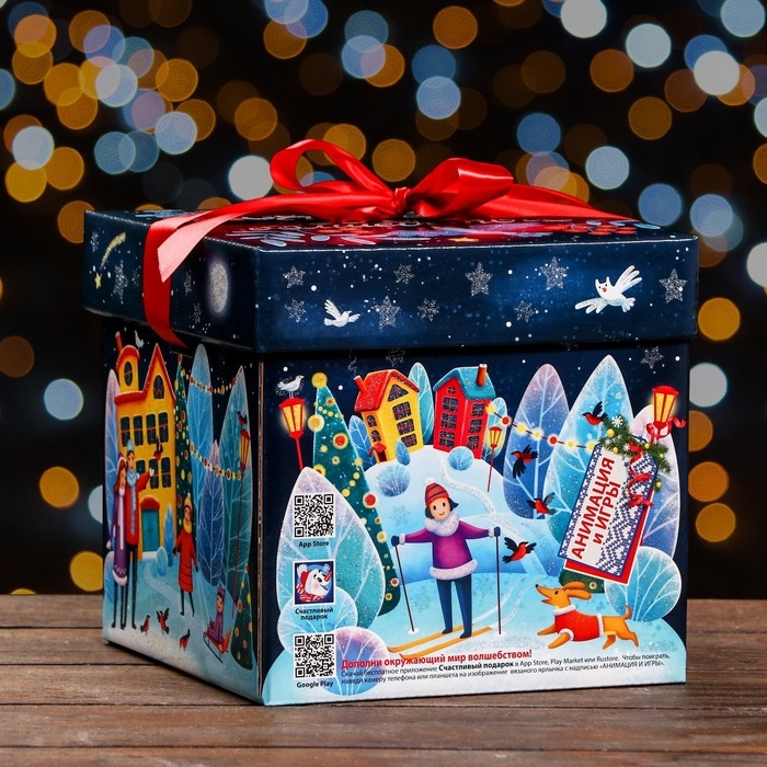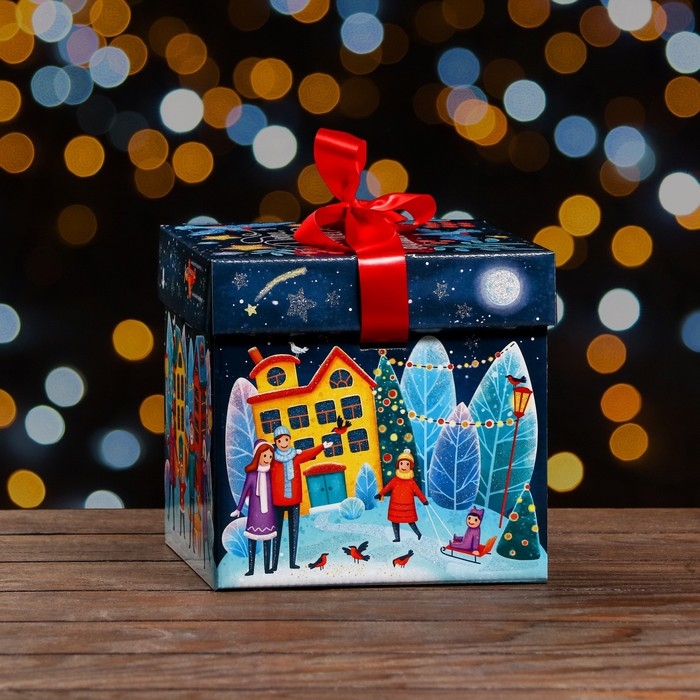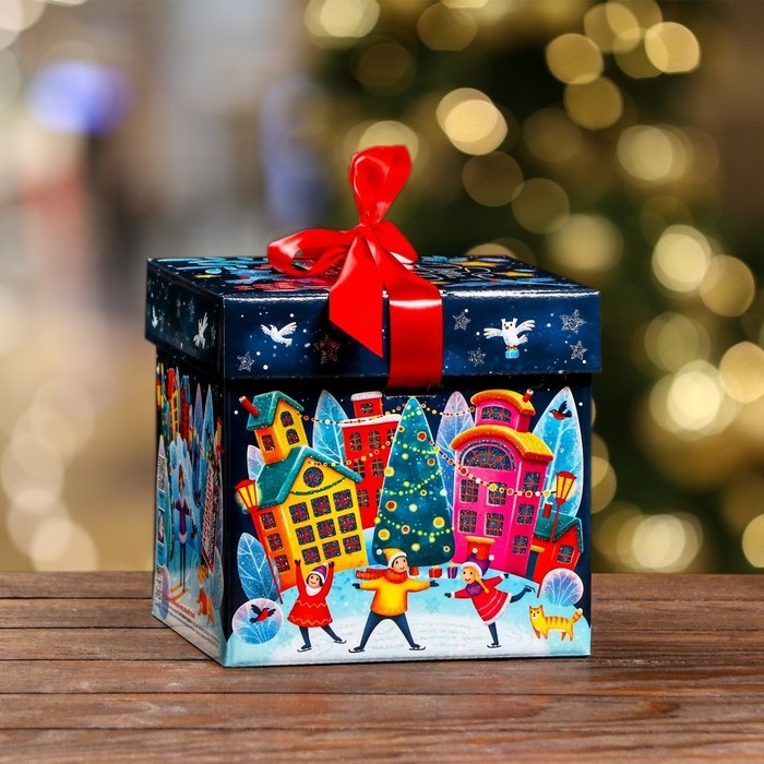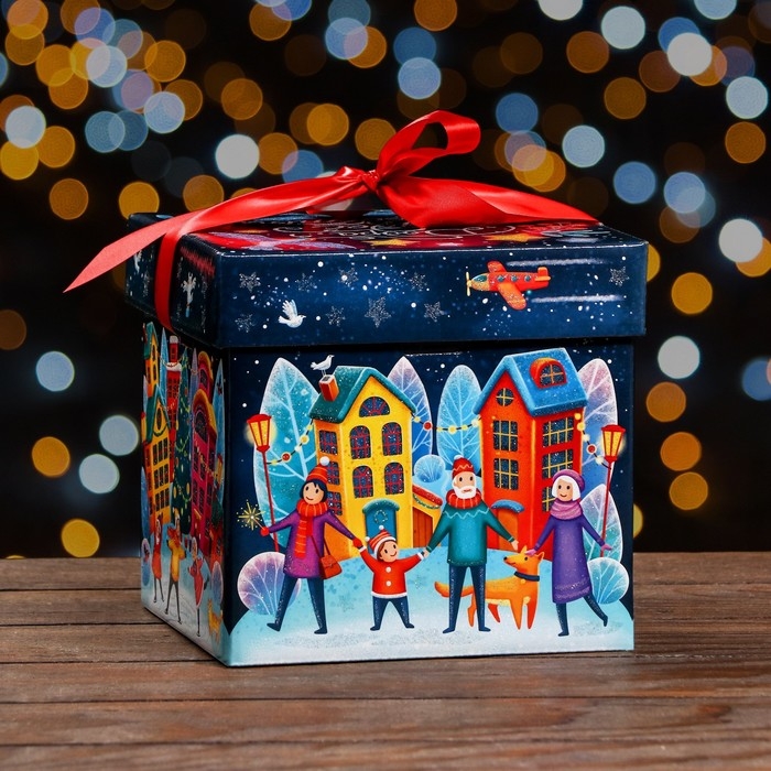 Новый год. Подарочная коробка "Праздник в городе" , Коробка крышка-дно , 17,5 х 17,5 х 17 см.