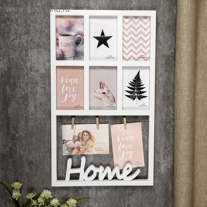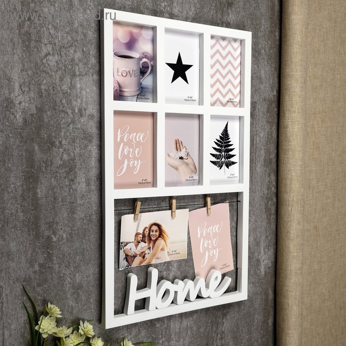 Фоторамка пластик на 7 фото 10х15 см "Дом" белая 55,5х33 см