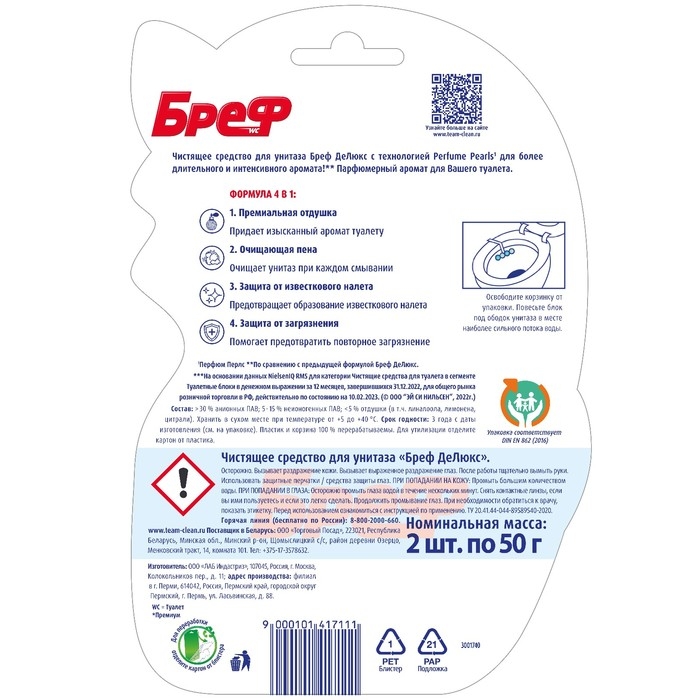 Bref блок для унитаза — это идеальное решение для поддержания чистоты и свежести в вашем туалете. Он обеспечивает эффективное удаление загрязнений и бактерий, а также оставляет приятный свежий аромат. Bref блок содержит специальные активные вещества, которые помогают предотвратить образование известкового налёта и ржавчины. Благодаря своей уникальной форме, Bref блок легко устанавливается на унитаз и обеспечивает равномерное распределение чистящего средства.