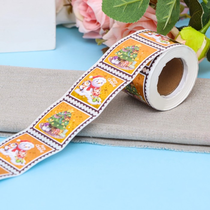 Наклейки в рулоне "Снеговик",300 шт,3,8 х 3,8 см