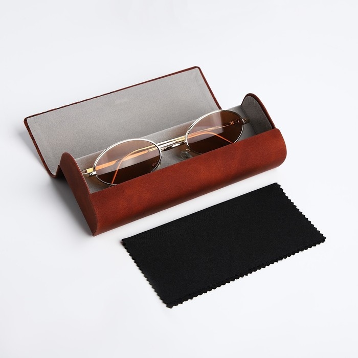 Футляр для очков — это необходимый аксессуар для любого современного человека, так как он поможет сохранить ваши очки в идеальном состоянии. Иногда возникают неудобства с ношением солнечных очков и очков для зрения одновременно, в этом случае нам пригодится специальный футляр для хранения очков. Футляр имеет жёсткий корпус, который защитит стёкла от пыли и предотвратит появление царапин и повреждений. Этот чехол – унисекс, он идеально подходит как для мужского, так и для женского стиля. Наш чехол для очков выполнен из качественной экокожи, которая обеспечивает надёжную защиту и долгий срок службы. Конверт имеет хлопушку, благодаря которой его можно легко и удобно закрыть. Этот чехол имеет горизонтальную форму, что позволяет легко и удобно хранить в нем очки. Также он обладает отличным солнцезащитным эффектом, благодаря специальному материалу, которая не пропускает ультрафиолетовые лучи. Очечник из искусственной кожи универсален благодаря своей однотонной фактуре и стильному дизайну. Его коричневый оттенок подойдёт каждому. Контейнер имеет удобную форму, которая позволяет легко и компактно хранить очки в сумке или кармане, не занимая много места. Жёсткий футляр — это прекрасный подарок для мужчин и женщин на любой праздник. За счёт своего модного внешнего вида футляр понравится парням или девушкам-подросткам.