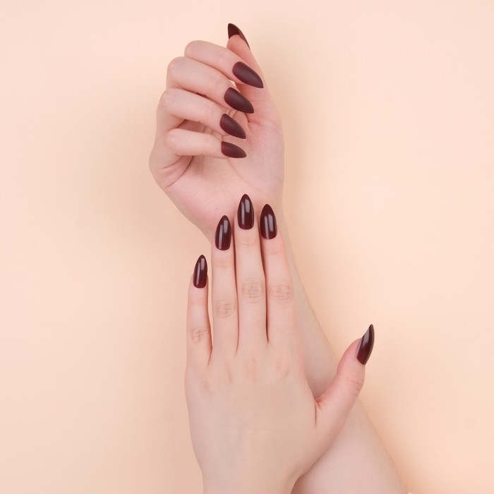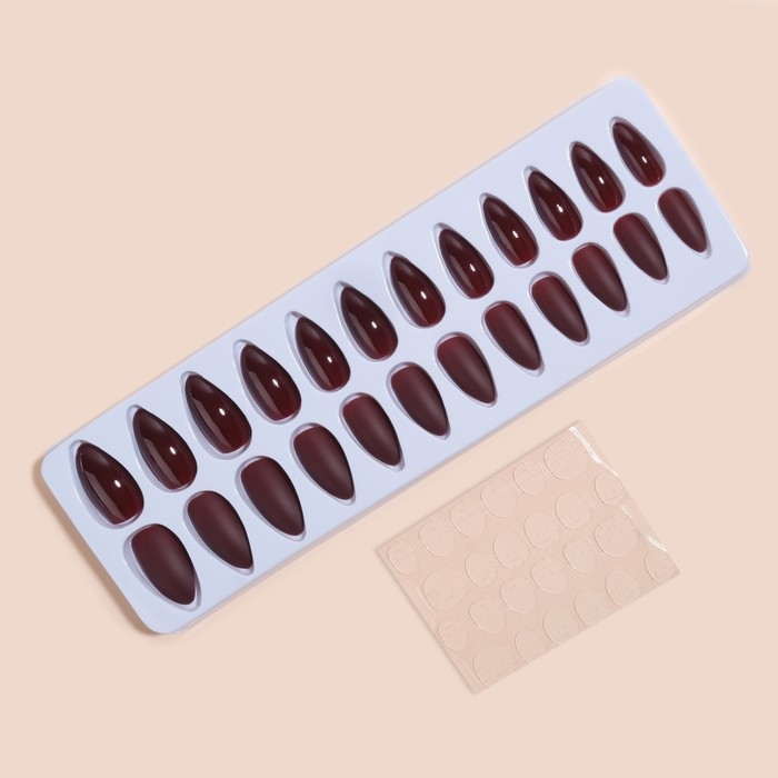Накладные ногти, 24 шт, с клеевыми пластинами, форма миндаль, цвет бордовый