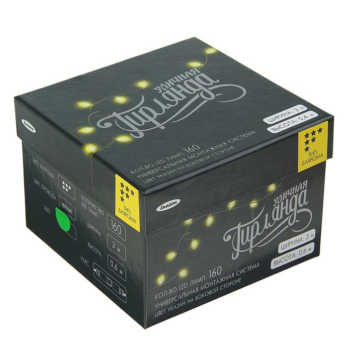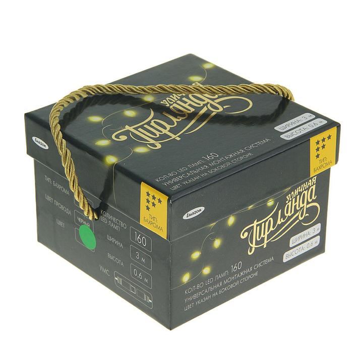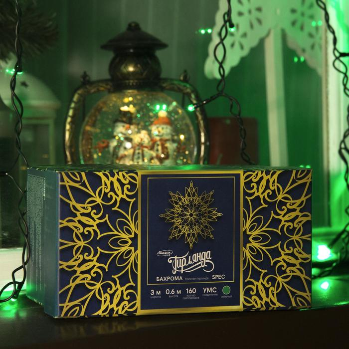 Гирлянда «Бахрома» 3 × 0.6 м, IP44, УМС, тёмная нить, 160 LED, свечение зелёное, 220 В