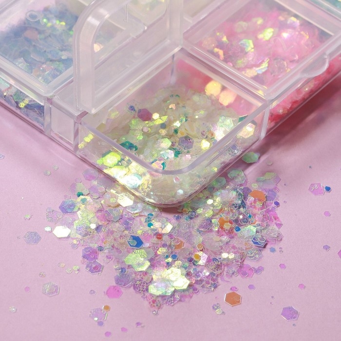 Блёстки для декора ногтей, 12 ячеек, мелкие, разноцветные