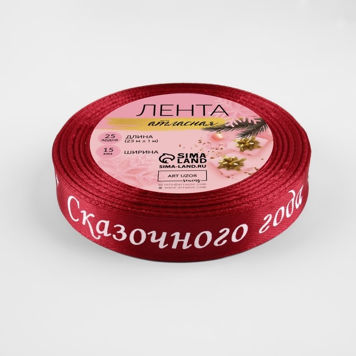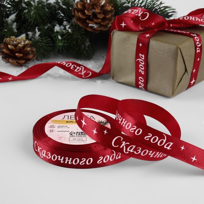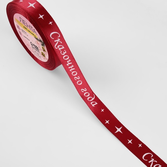 Новый год! Лента атласная «Сказочного года», 15 мм, 23 ± 1 м, цвет красный №033