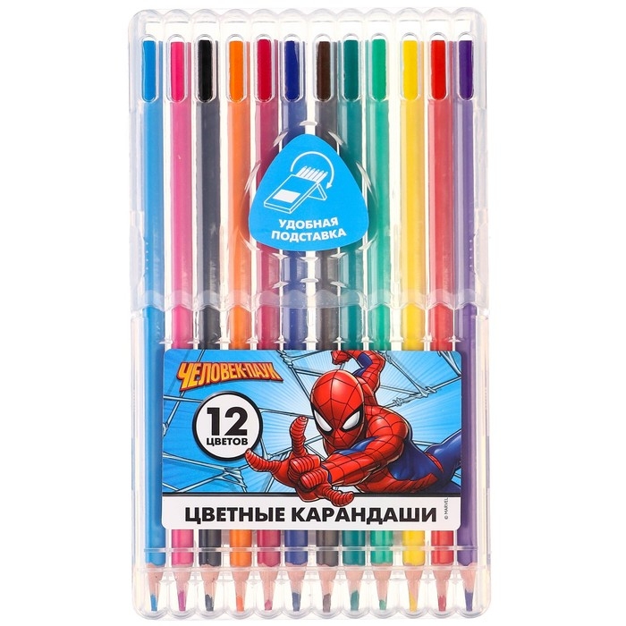Цветные карандаши, 12 цветов, трехгранные, Человек-паук
