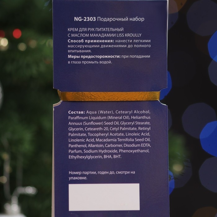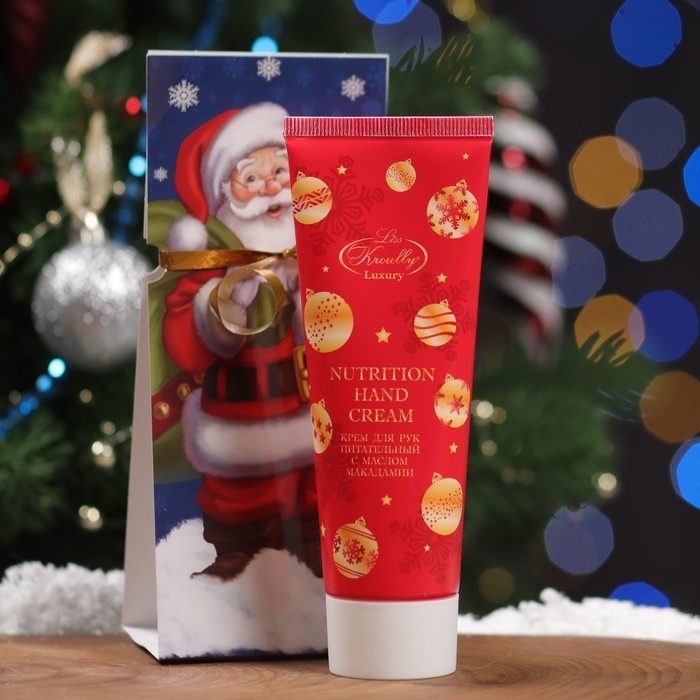 Новый год. Крем для рук в подарочной упаковке Liss Kroully "Дед мороз", питательный с маслом макадами, 75 мл
