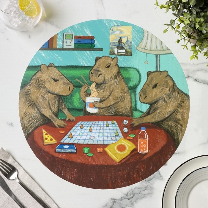 Салфетка кухонная круглая «Капибары. Настольные игры», 2 шт, настольное покрытие, d=36 см