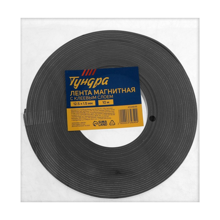 Магнитная лента ТУНДРА, с клеевым слоем, 12.5 х 1.5 мм, длина 10 м
