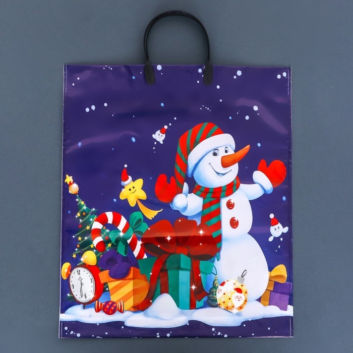 Новый год. Пакет "Снеговичок с подарками", полиэтиленовый с пластиковой ручкой, 38х45 см.
