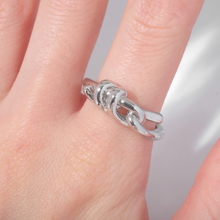 Кольцо «Узел» двойной, цвет серебро, безразмерное