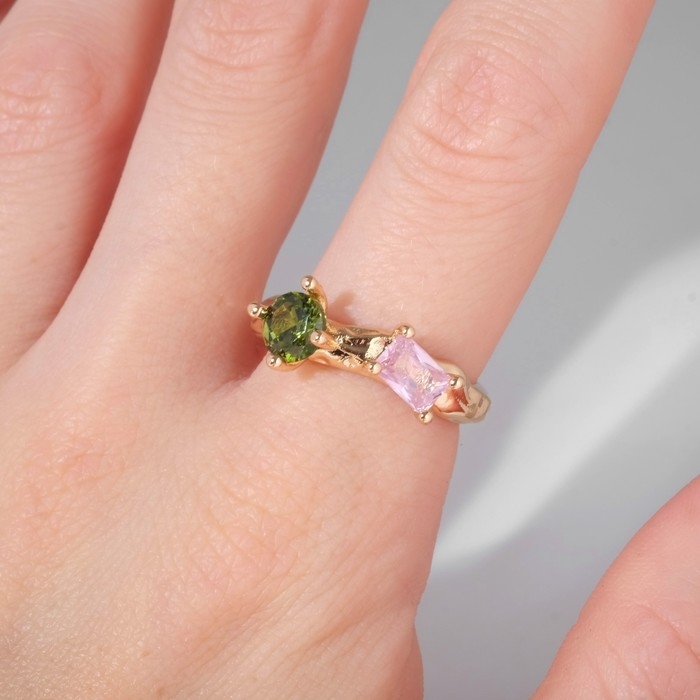 Кольцо «Яркость» кристаллов, цвет розово-зелёный в золоте, безразмерное