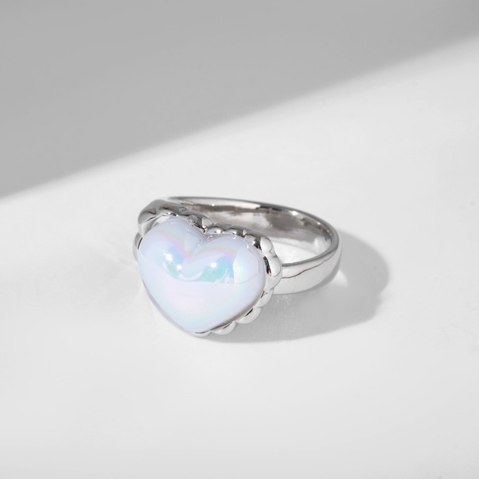 Кольцо «Сердце» перламутр, цвет радужно-белый в серебре, безразмерное