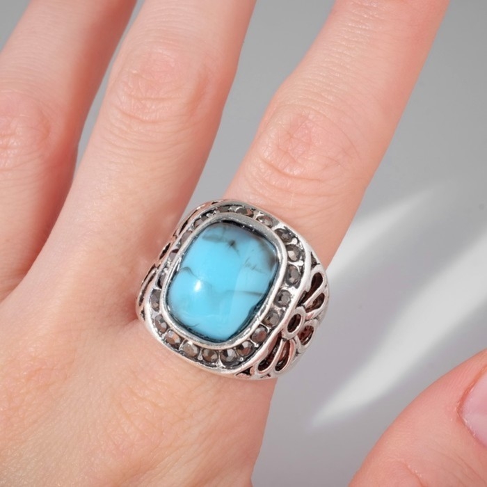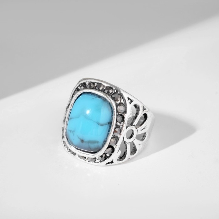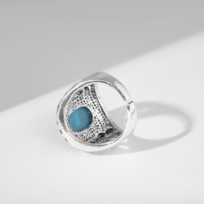 Кольцо «Бирюзовый мир» овал, цвет чёрно-голубой в чернёном серебре, безразмерное