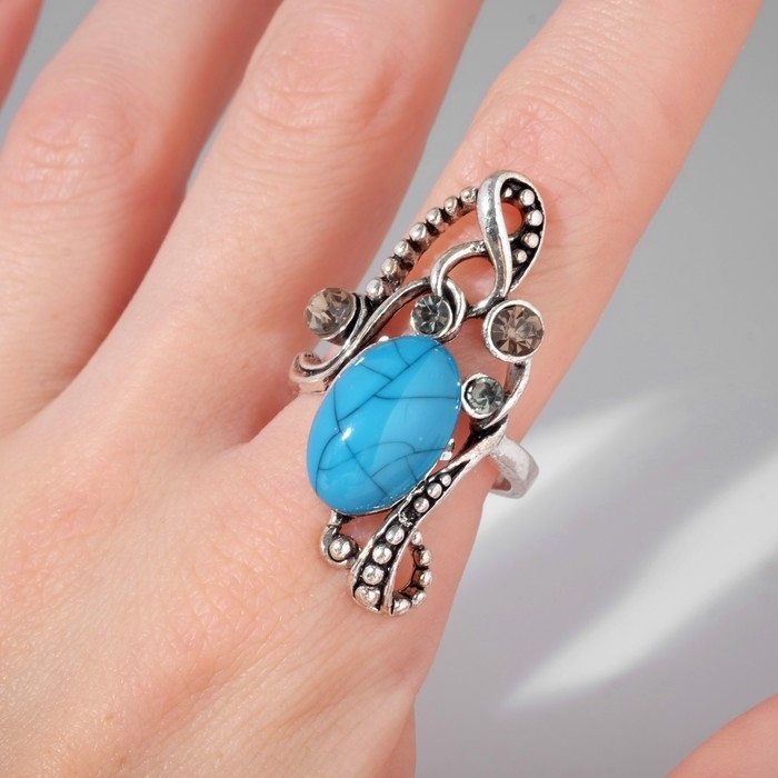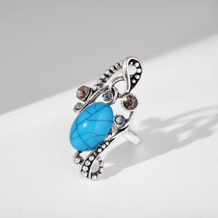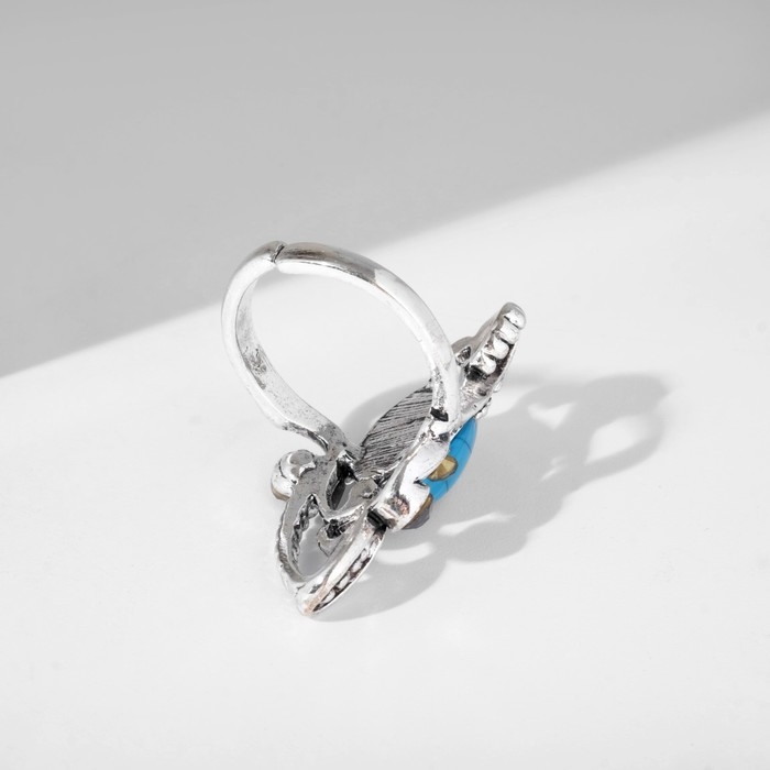 Кольцо «Бирюзовый мир» овал в ажуре, цвет коричнево-голубой в чернёном серебре, безразмерное
