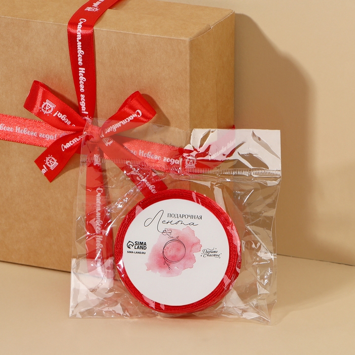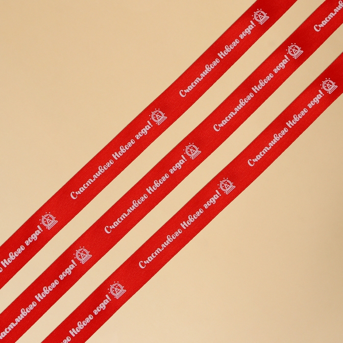 Лента атласная декоративная «Счастливого Нового года!», красная, 1,5 см × 5 м