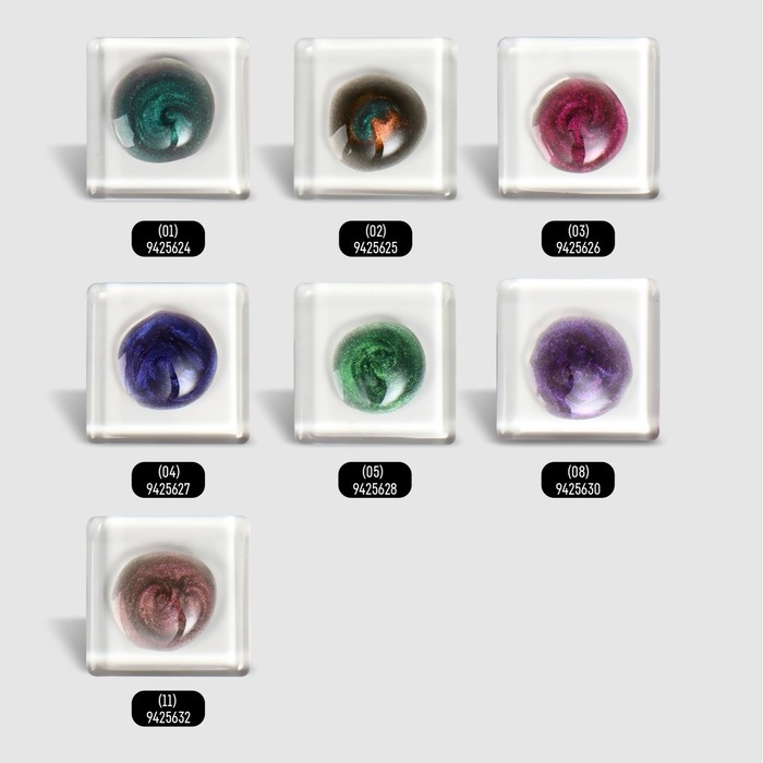 Магнитный гель лак кошачий глаз — это глубокий объемный блик, который под разным углом зрения меняет свой первоначальный цвет от двух до пяти переливов, а светоотражающие частички будут переливаться на свету.Индикатор цвета на верху бутылька, поможет Вам подобрать идеальный цвет.