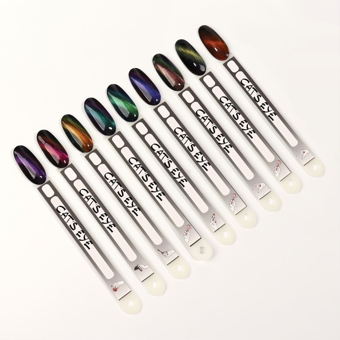 Магнитный гель лак кошачий глаз — это глубокий объемный блик, который под разным углом зрения меняет свой первоначальный цвет от двух до пяти переливов, а светоотражающие частички будут переливаться на свету.Индикатор цвета на верху бутылька, поможет Вам подобрать идеальный цвет.
