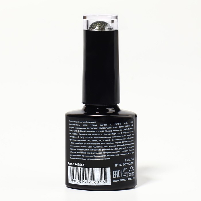 Гель лак для ногтей, с блёстками, 3-х фазный, 8 мл, LED/UV, голубой