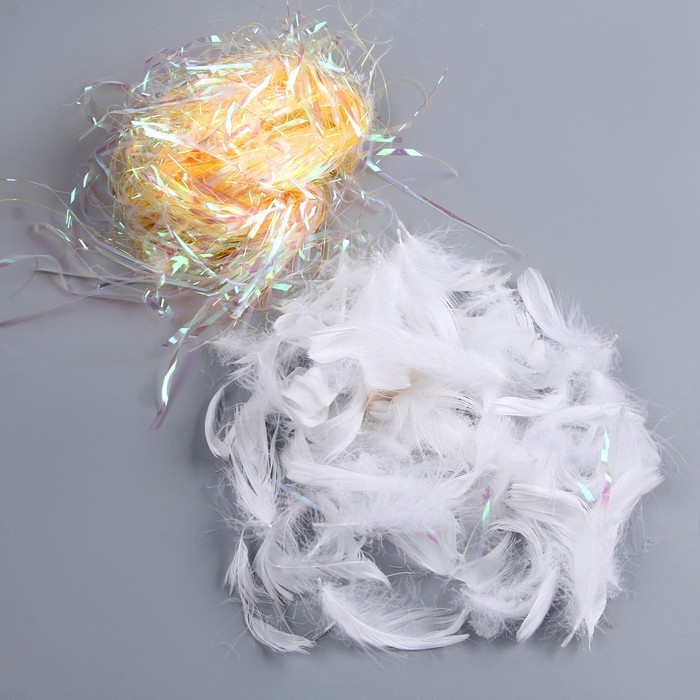 Набор для творчества и декора «Перья белые + наполнитель», цвет оранжевый