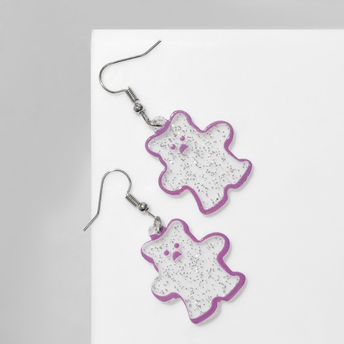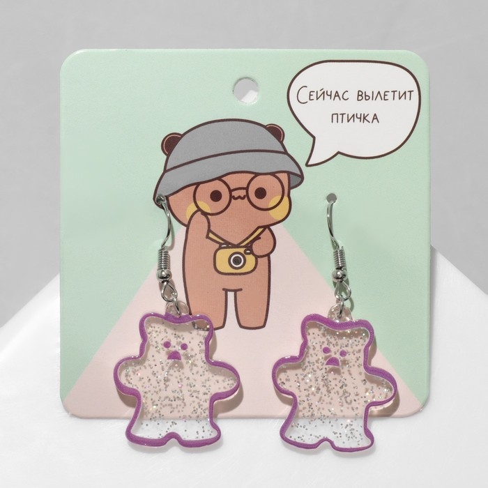 Серьги акрил «Мишка» в блёстках, цвет радужно-фиолетовый в серебре