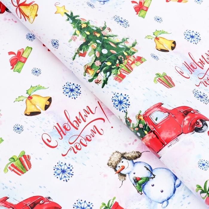 Новый год. Бумага упаковочная глянцевая "С Новым годом! ", 70 х 100 см,1 лист,