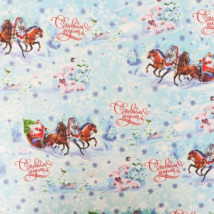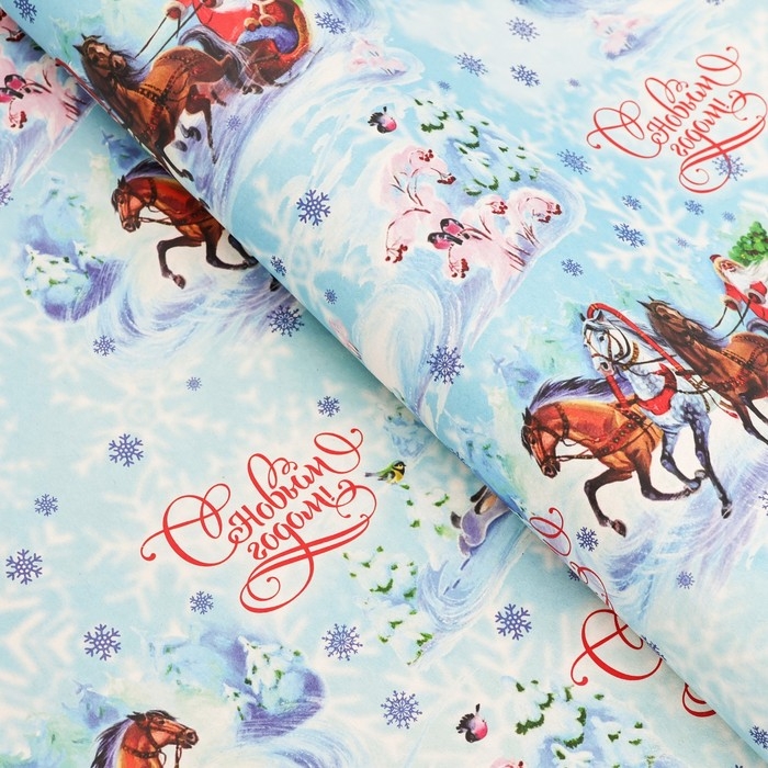 Новый год. Бумага упаковочная крафт белый "Тройка", 70 х 100 см,1 лист,