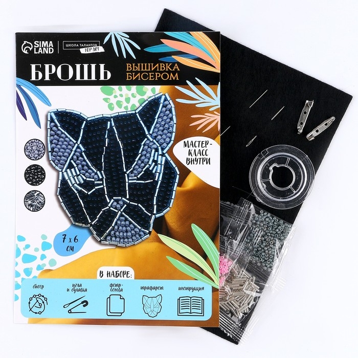 Вышивка бисером. Брошь «Черная пантера», набор для творчестваа