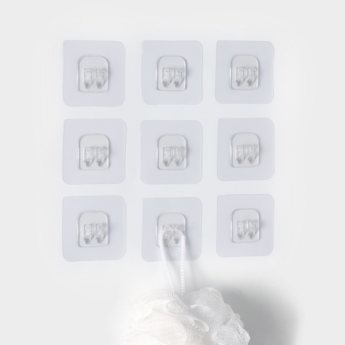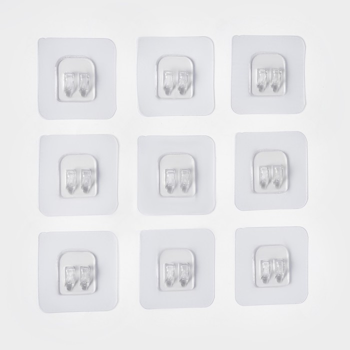 Крючок самоклеящийся для прутьев, прозрачная основа, 5,6×5,6 см, 10 шт