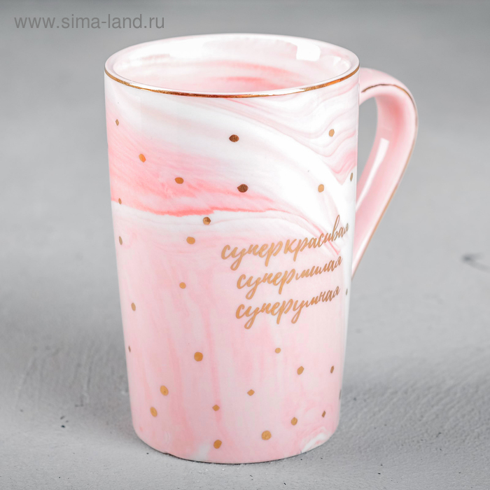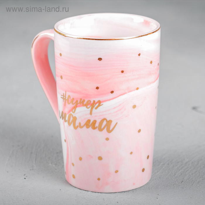 Кружка керамическая «#супер мама», 350 мл, цвет розовый мрамор